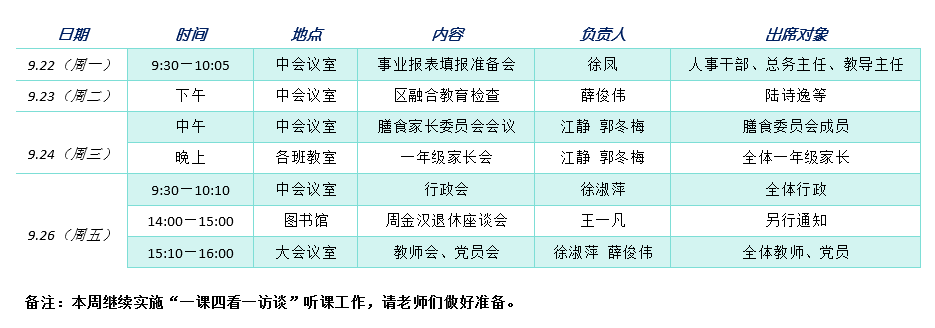 第4周教师公出活动安排表(2025第一学期)