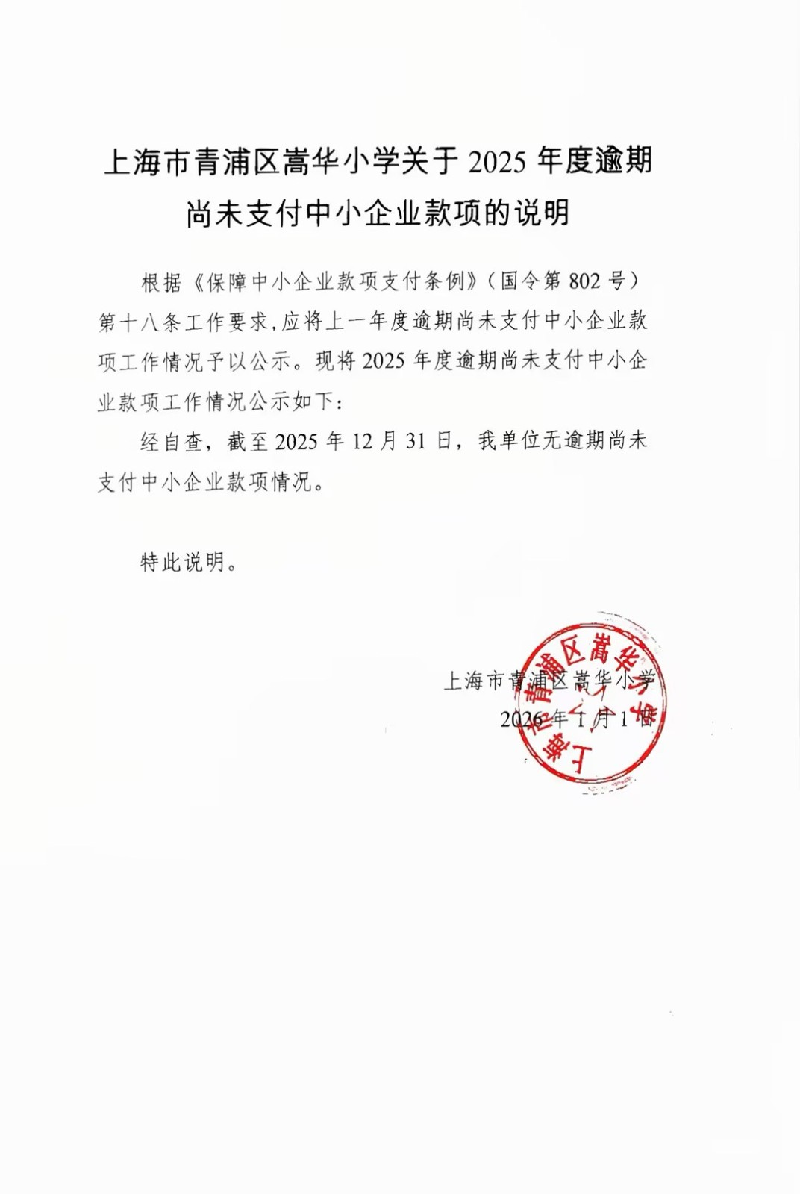 上海市青浦区嵩华小学关于2025年度预期尚未支付中小企业款项的说明
