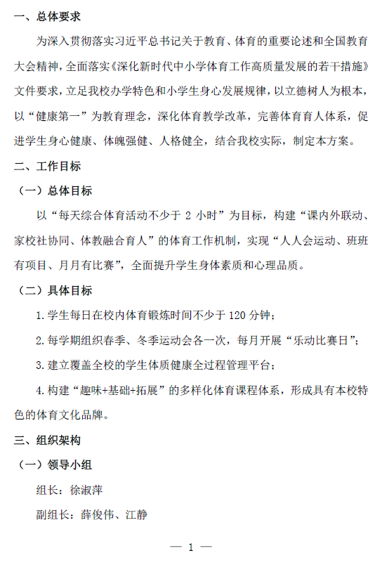 青浦区嵩华小学深化新时代学校体育工作高质量发展工作方案